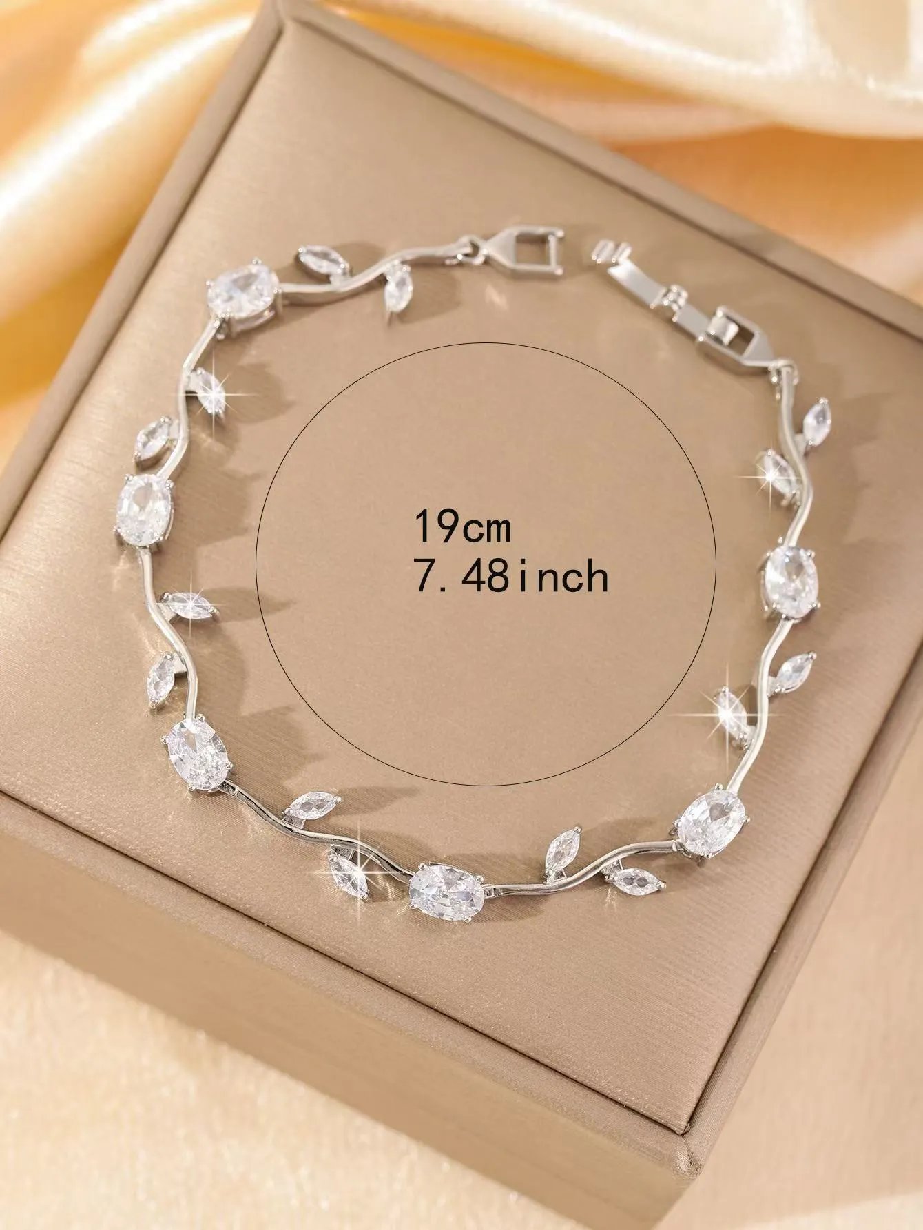 Jemné motivy vinné révy se ladně vinou kolem vašeho zápěstí a jsou ozdobeny zářivými drahokamovými květy. Vyberte si z vášnivého safíru, něžné světlé růže nebo zářivě jasné bílé — každá varianta vypráví svůj vlastní příběh.